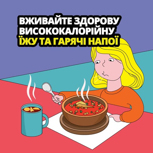 “Якщо ви змерзли на вулиці, динамічно ворушіться, випийте щось гаряче та хоча б на декілька хвилин зайдіть у тепле приміщення як-от найближча крамниця, аптека чи пункт незламності ДСНС,” — наголошують експерти.