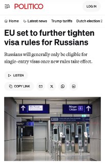 Згідно з повідомленнями видання Politico, ЄС планує суттєво обмежити видачу багаторазових шенгенських віз для росіян. Це може означати фактичну зупинку видачі таких віз, роблячи їх отримання значно складнішим. Такі дії Європейський Союз обдумує у відповідь на актуальні політичні обставини. В разі реалізації цього рішення, громадяни росії зазнають суттєвих перешкод для подорожей в країни Союзу.