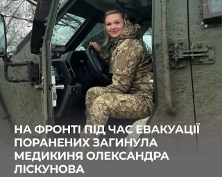 На фронті, під час евакуації поранених, загинула 30-річна медикиня з Полтавщини Олександра Ліскунова.