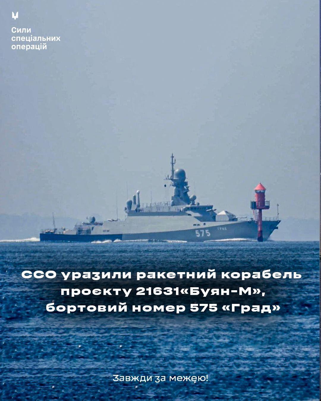 У ніч на 4 жовтня 2025 року, о 04:31, підрозділ Сил спеціальних операцій Збройних Сил України завдав удару по малому ракетному кораблю «Град» (бортовий номер 575) проєкту 21631 «Буян-М». Ураження сталося на Онезькому озері, що розташоване в Республіці Карелія (рф), під час переходу корабля з Балтійського до Каспійського моря.